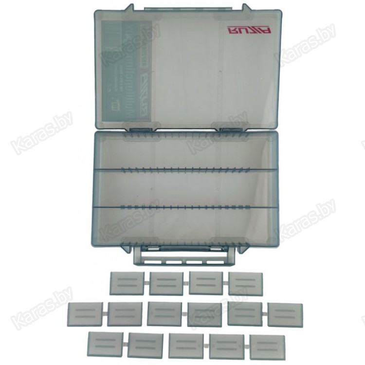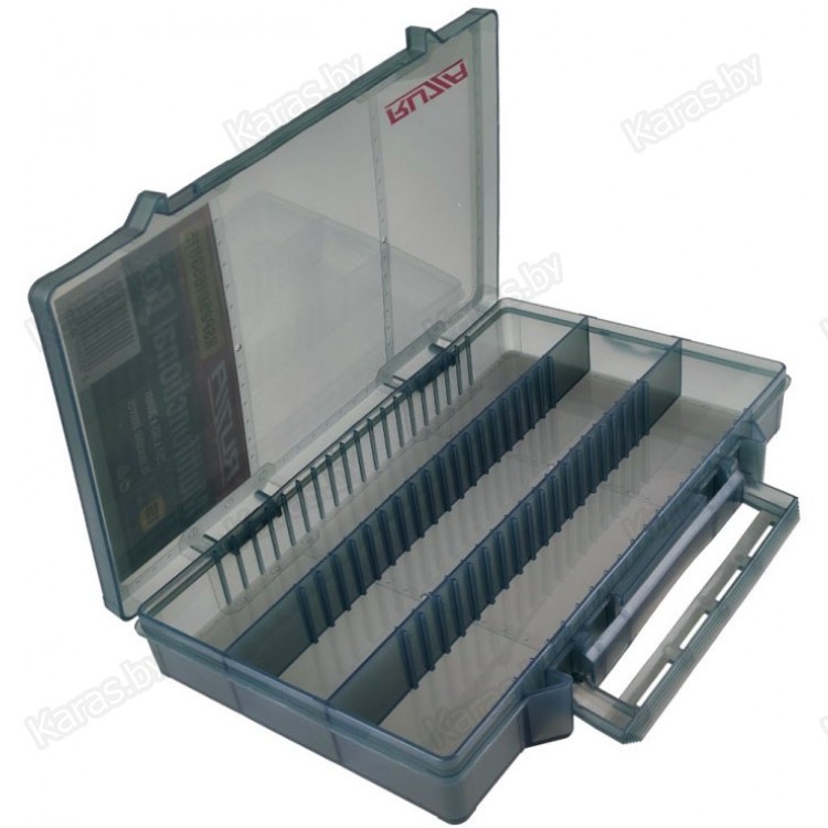 Односторонняя коробка для хранения приманок и аксессуаров из ударопрочного армированного пластика PP (полипропилен). Доступна регулировка свободного пространства посредством изменения расположения перемычек (15 шт). Подвижные вставки помогут гибко менять размеры отсека под Ваши нужды и задачи.