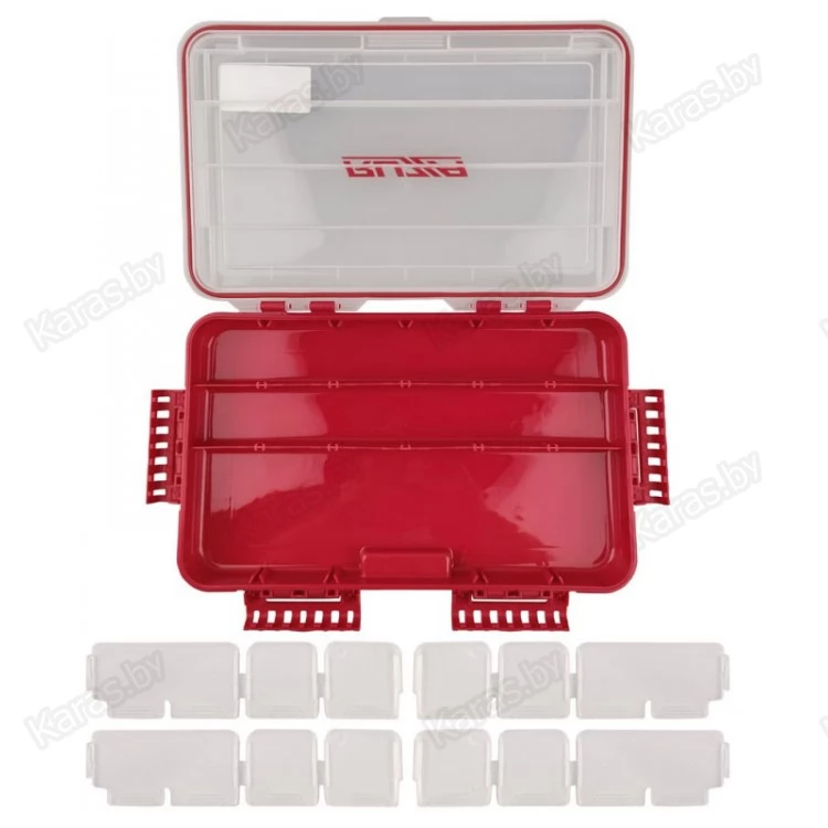 Односторонняя коробка для хранения приманок и аксессуаров из ударопрочного армированного пластика PP (полипропилен). Доступна регулировка свободного пространства посредством изменения расположения перемычек (14 шт). Коробка имеет силиконовое уплотнение, придающее ей герметичность. Подвижные вставки помогут гибко менять размеры отсека под Ваши нужды и задачи.