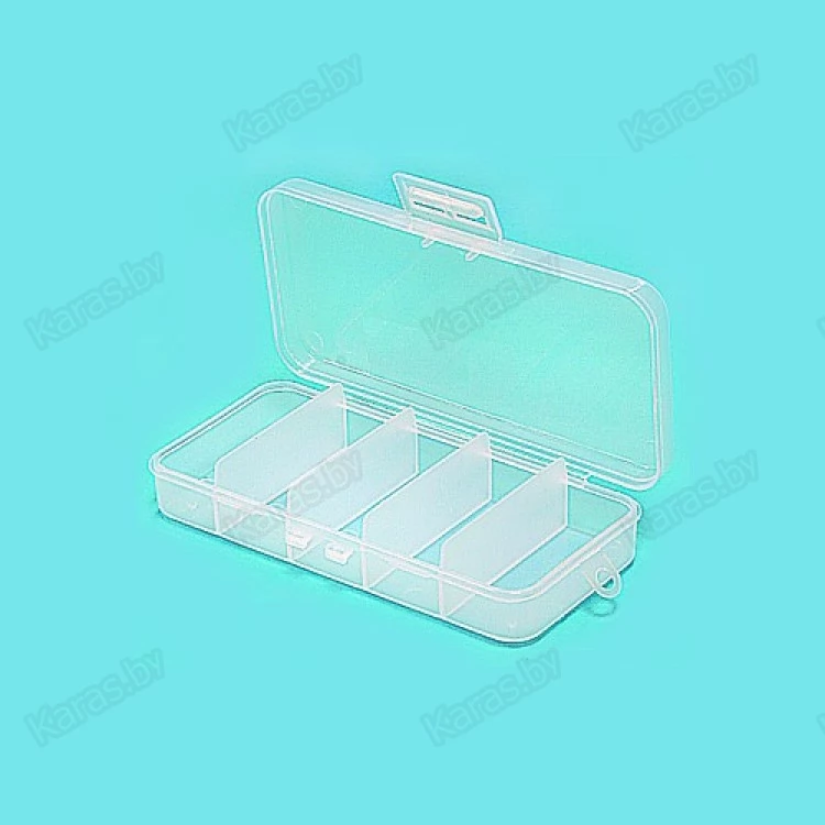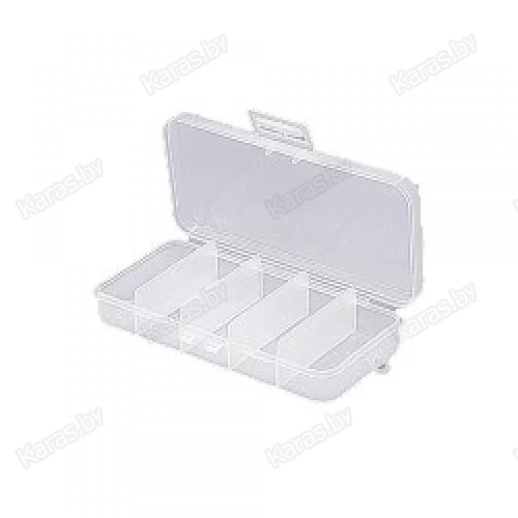 Небольшая односторонняя коробочка для хранения рыболовных мелочей с фиксированными перегородками.