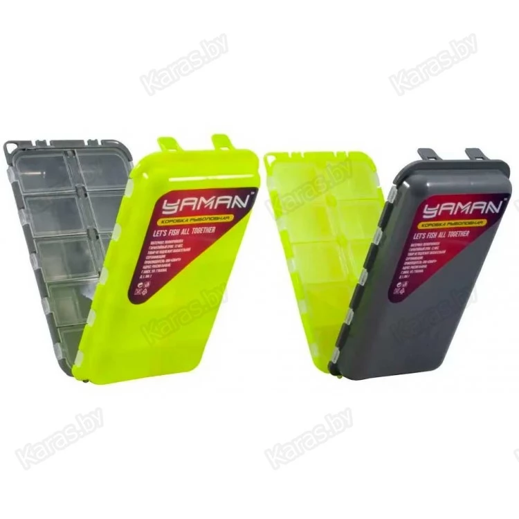 Коробки Яман - яркие и удобные коробки для хранения и транспортировки рыболовных принадлежностей и наживок. Модель Y-BOX07 изготовлена из морозостойкого материала и оборудована ячейками, что позволяет комфортно носить в ней приманки, оснастки и различные рыболовные мелочи.