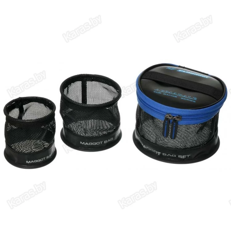 Armadale Eva Maggot Bag Set – набор сетчатых емкостей из EVA для хранения опарыша. Большая емкость имеет крышку, может использоваться для хранения и транспортировки опарыша. Две меньшие, без крышек, предназначены для хранения опарыша непосредственно во время рыбалки. Сетчатые стенки и дно обеспечивают хорошую вентиляцию личинок. Для транспортировки емкости Eva Maggot Bag Set могут компактно укладываться одна в другую. На крышке большей емкости предусмотрена ручка для транспортировки. Емкости EVA Maggot Bag не впитывают запахи, легко моются и очищаются.