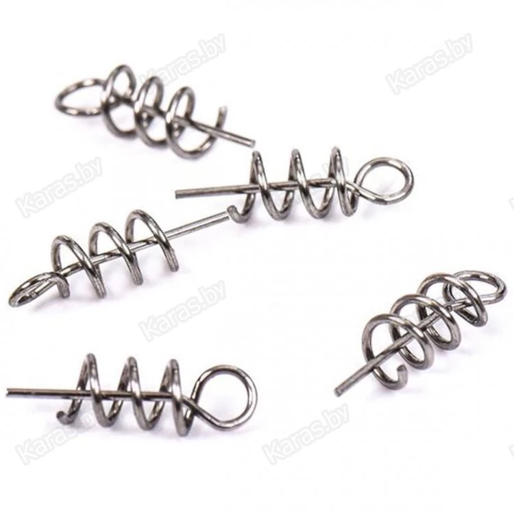 Штопор Strike Pro для оснащения крупных приманок. Отличается высокой надежностью. Штопор не возможно сорвать в обратном направлении. Для изготовления используется нержавеющая проволока. В иных случаях, проволока с гальваническим покрытием, предохраняющим от ржавчины. Прямая центральная ось и навитая вокруг нее спираль с заходом выше кончика оси. Вверху кольцо или проушина для креплени лески или вертлюга. Спираль вкручивается в силиконовую приманку в передней части. Глубокий заход исключает срыв приманки хищником. Штопор используется только в сборе с поводком, тройниками и шипами. Штопор, главным образом, удерживает весь монтаж снасти.