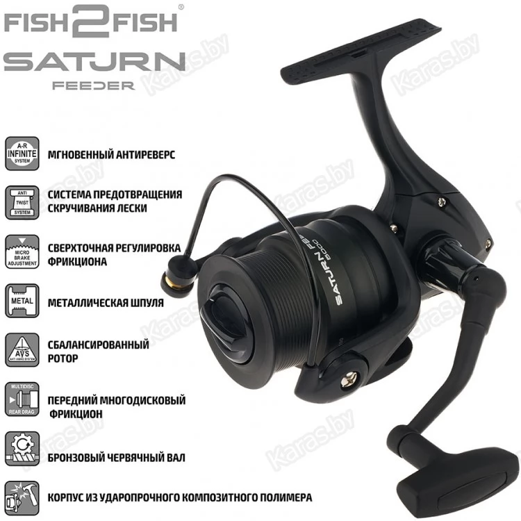 Cерия катушек Fish2fish Saturn Feeder c передаточным соотношением 4,4:1. Данная серия катушек подойдет для ловли на течении с использованием тяжелых кормушек, но при этом подходит и для ловли на водоемах со стоячей водой, на более деликатные оснастки. Катушка имеет 4 шарикоподшипника, облегченный пластиковый, но достаточно прочный корпус и ротор. Шпуля катушки выполнена из алюминия, в которой находится фрикцион с высокоточной настройкой.