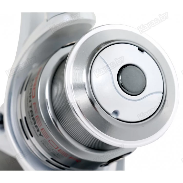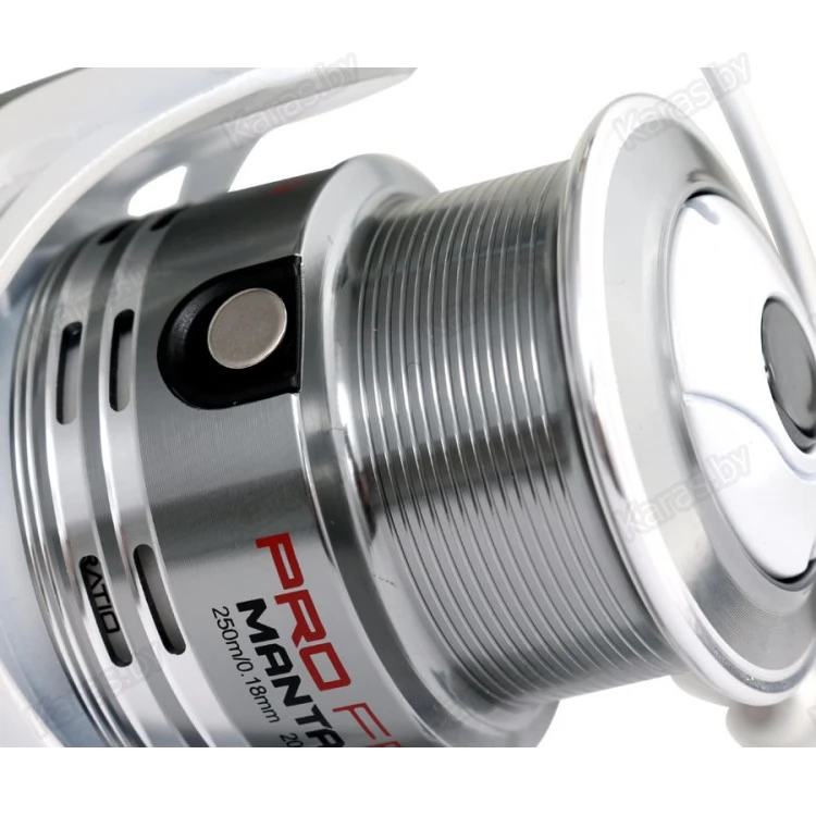 Высококлассная катушка для ловли рыбы фидером. Низкопрофильная алюминиевая шпуля и качественная укладка лески с помощью усовершенствованного кулисного механизма обеспечивают возможность без труда забрасывать на большие дистанции. Для удобства фиксации дистанции ловли шпуля оснащена двумя клипсами, окрашенными в разный цвет. Задний фрикцион дает возможность регулировать тормозное усилие в процессе вываживания рыбы, что является преимуществом при использовании тонких оснасток. Мощная передаточная пара гарантирует значительный ресурс механизма и великолепные тяговые характеристики. Увеличенный ролик лесоукладывателя имеет специальную конфигурацию, которая препятствует перекручиванию лески при подмотке. Катушка поставляется с двумя алюминиевыми шпулями.