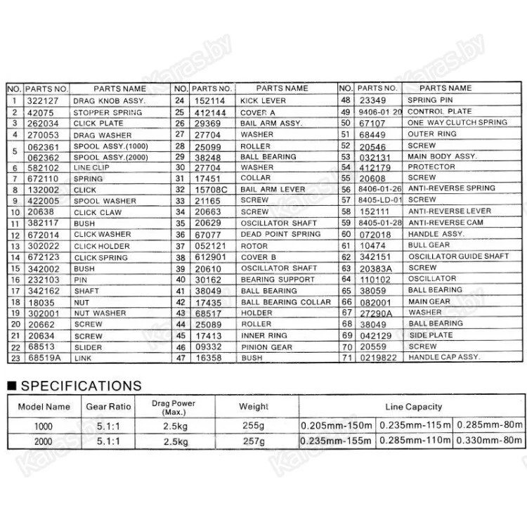| Лесоёмкость шпули, м/мм | 80/0.285 |
