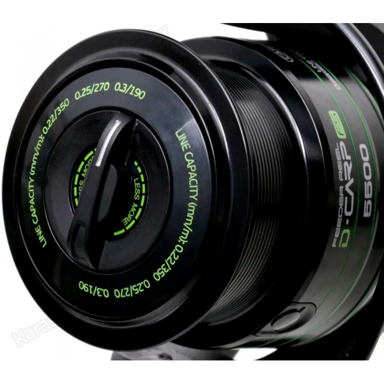 Carp Pro D-Carp Feeder – мощная катушка для ловли метод-фидером на максимальных дистанциях. Шпуля геометрии Long Cast имеет большую площадь поверхности намотки, поэтому даже при очень дальних забросах диаметр намотки снижается минимально, и трение практически не повышается. Снижению трения, а, следовательно, и повышению дальности заброса также способствует коническая форма. Исключительно качественная укладка лески достигается использованием усовершенствованного кулисного механизма. Точеная алюминиевая шпуля и ролик лесоукладывателя со сверхтвердым напылением позволяют без ограничений работать как с лесками, так и со шнурами. Фрикцион D-Carp Feeder с мощными дисками и точной настройкой отличается стабильной работой и не подведет в самый ответственный момент.