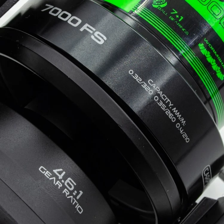 Катушка, сочетающая все параметры, необходимые для сверхдальнего заброса, с системой Free Spool, дающей возможность карпу после поклевки беспрепятственно сматывать леску. Удлиненная низкопрофильная шпуля большого диаметра имеет большую площадь поверхности. Благодаря этому при сверхдальних забросах диаметр намотки уменьшается крайне незначительно, а это значит, что леска не испытывает повышенного трения о выступающий буртик шпули, как это происходит при использовании обычных катушек. Идеально ровную укладку лески обеспечивает бесконечный винт. Под шпулей находится специальное кольцо на четырех опорах, цилиндрические выступы которого входят в пазы, расположенные на внутренней поверхности ротора.