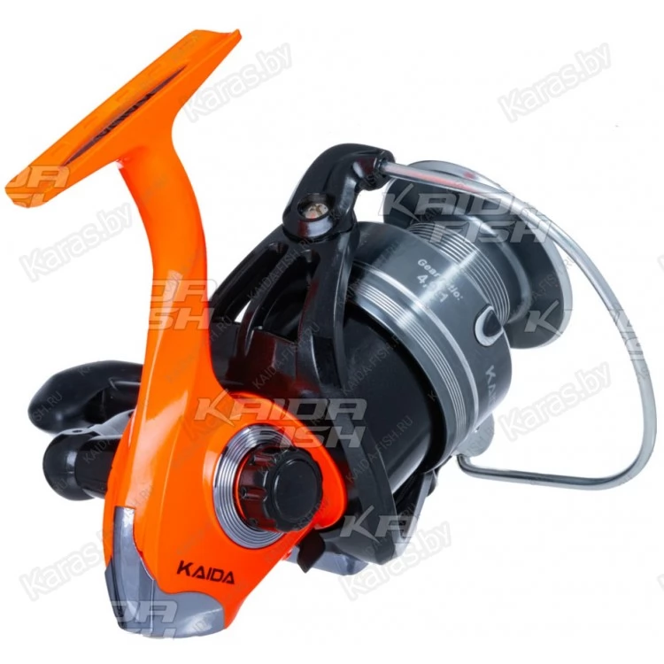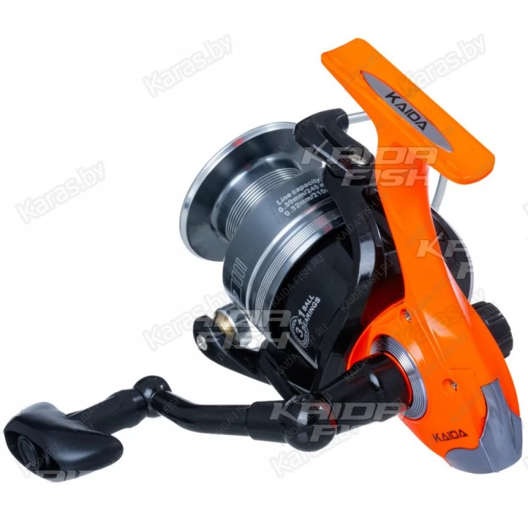 Kaida EHQ-02 серия катушек с доступной ценой. Шпуля металлическая, подойдет и для монофильной лески, и для плетеной. Плавность хода обеспечивают 4 подшипника. Рукоять переставляется под правую или левую руку. Отличительной особенностью для этого ценового сегмента можно назвать минимальные люфты и отличную укладку лески.