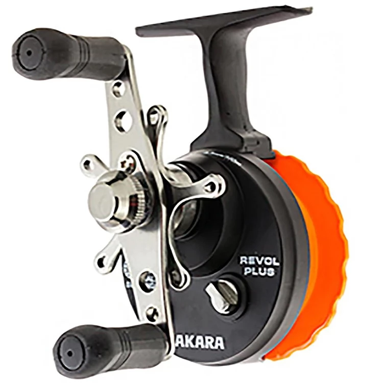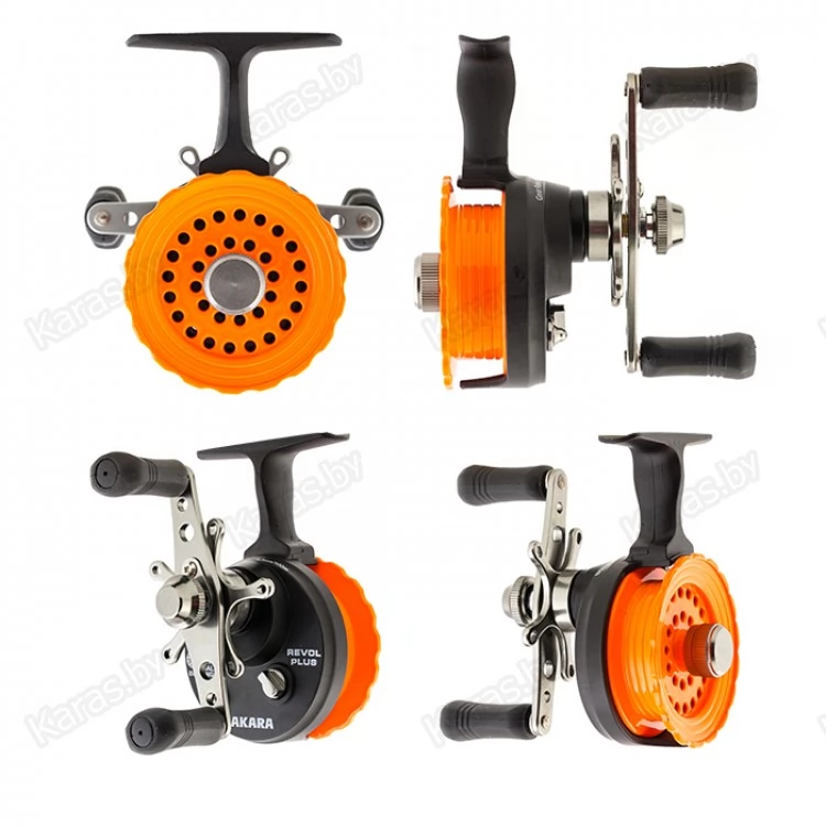 Катушка мультипликаторная зимняя Akara Revol Plus 4+1bb. Мультипликаторная катушка для оснащения зимних удочек для отвесной ловли. Катушка позволяют вываживать рыбу с глубины, используя только катушку, как при ловле на спиннинг – тащить рыбу руками за леску не обязательно. Шпули открытые, позволяют зрительно контролировать намотку лески на шпулю. Катушки не снабжены лесоукладывателем. Отличительной особенностью катушек является удлинённая ножка, которая даёт достаточную свободу для пальцев при удержании удочки в процессе вываживания.