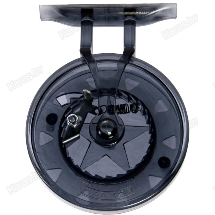 Катушка изготовлена из ударопрочного и морозостойкого поликарбоната, к нему не прилипает снег, коэффициент скольжения у данного поликарбоната очень высокий, поэтому места трения не нуждаются в дополнительной смазке. Все металлические элементы анодированы, что исключает их преждевременную коррозию. Шпуля утоплена в корпус - это предохраняет леску от западания между шпулей и корпусом катушки. Шпуля соединена с корпусом гайкой с полиэтиленовой вставкой, что исключает их самооткручивание. Фиксатор вращения катушки т.е. флажок, изготовлен из прочной стали, имеет ребра жесткости и установлен по отношению к упорам на шпуле под определенным углом, что в комплексе позволяет проводочной катушке выдерживать колоссальные нагрузки, как при подсечке, так и при вываживании очень крупной рыбы, не проворачиваясь.