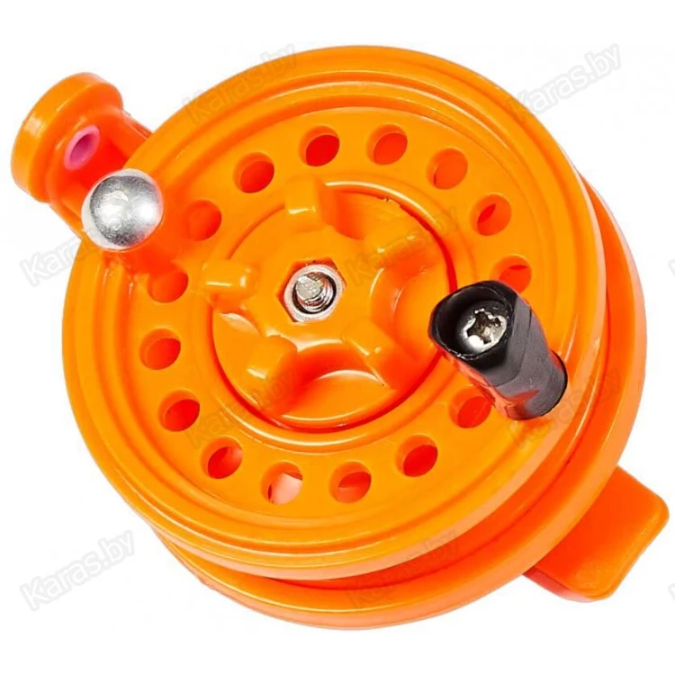 Качественная проводочная катушка для зимней ловли, выполненная из морозостойкого пластика. Горизонтальное расположение на удилище.