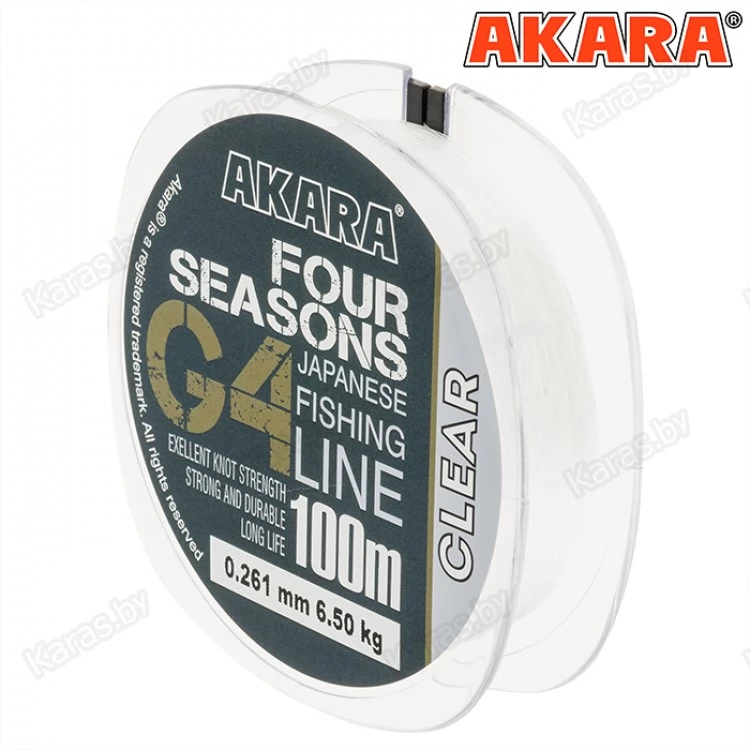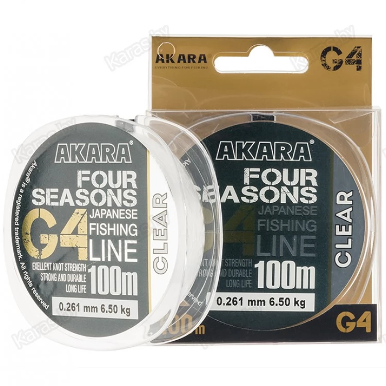 Леска Akara G4 Four Seasons представляет собой новое поколение рыболовных лесок. Она сделана из японского сырья и соответствует самым высоким требованиям современного рыболова. Леска G4 имеет очень точную калибровку и полностью соответствует указанному диаметру. В то же время при указанном диаметре эта леска имеет высокую разрывную нагрузку. Леска G4 имеет флюорокарбоновое покрытие, что увеличивает её абразивную устойчивость и повышает срок службы. Эта леска имеет отличную растяжимость и эластичность, что позволяет её использовать в качестве поводковой лески, а также для зимней рыбалки. Ну и самым отличным моментом является то, что леска практически не имеет памяти, что выделяет её среди конкурентов. В то же время леска G4 относится к сегменту лесок среднего ценового диапазона, что делает её доступной для массового потребителя.