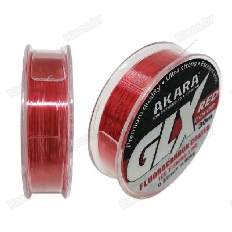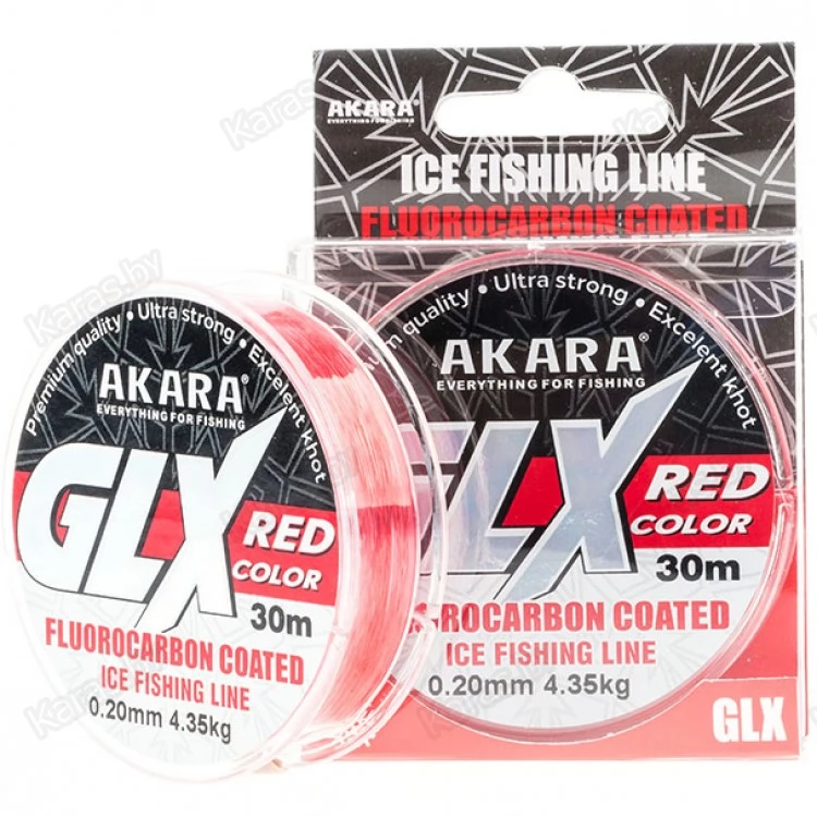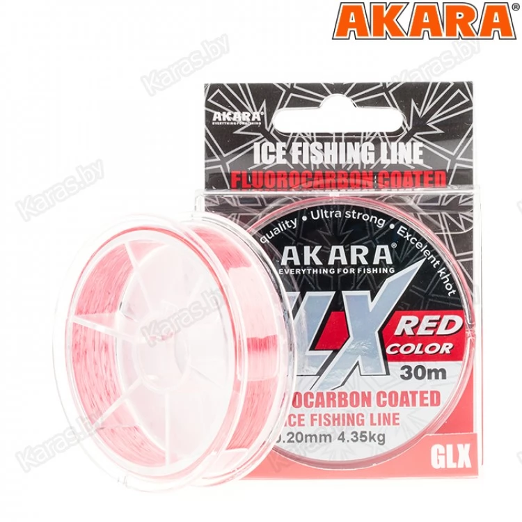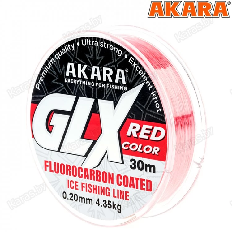 Рыболовная леска Akara GLX - относится к категории гибридных рыболовных лесок, она изготовлена из высококачественного полимера и имеет флюорокарбоновое покрытие. Благодаря этому леска имеет высокую прочность, практически не растягивается, не намокает, обладает высокой абразивостойкостью и может быть использована в тяжелых условиях лова. При ловле зимой леска не обмерзает и не истирается об острый край лунки. При использовании поводков для донной ловли, она так же выдерживает ракушечник и каменистое дно. Благодаря тому, что флюорокарбон практически невидим в воде, леска с покрытием из этого материала тоже малозаметна, что дает возможность поймать любую, даже самую осторожную рыбу.При этом красный цвет лески делает ее более заметной на снегу. При подборе лески надо учитывать, что данная леска тонущая.