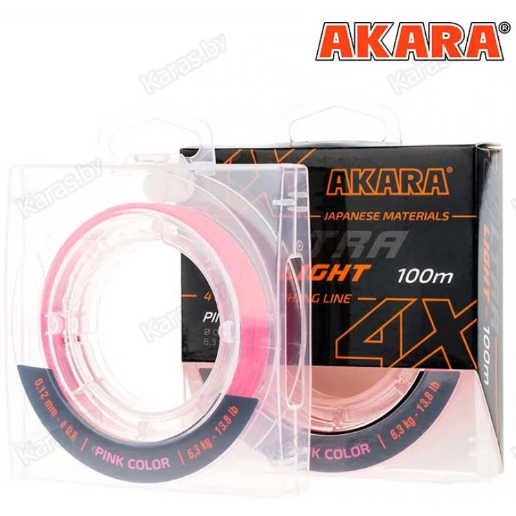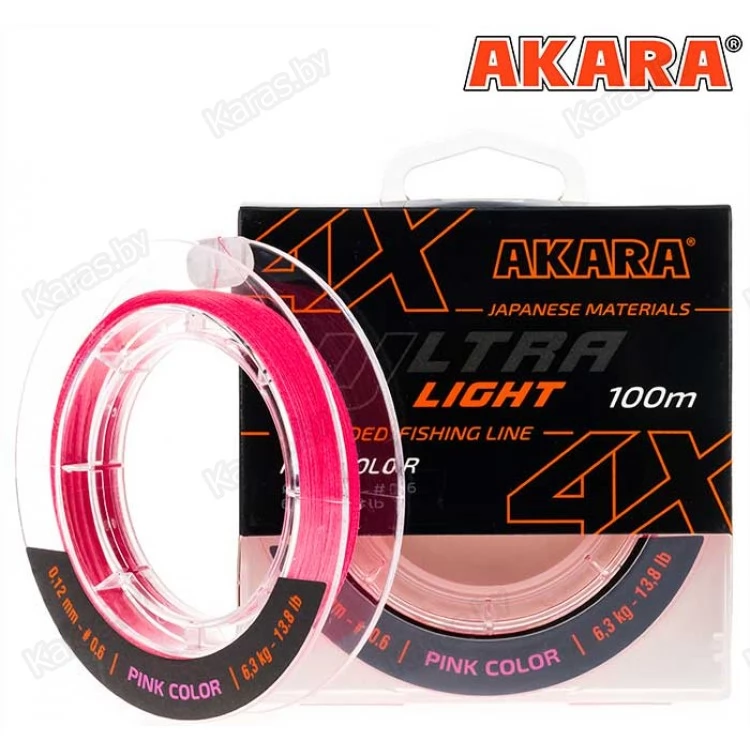 Akara Ultra Light X-4 100м - универсальный плетёный четырехжильный рыболовный шнур, выпускаемый под торговой маркой Akara. Шнур создан для того чтобы удовлетворить потребности рыболовов в качественном, надежном, прочном и недорогом шнуре. Эффективен для ловли на мелкие приманки. Сплетен из нового современного волокна японского производства повышенной плотности. Отличается высокой прочностью и надежностью и подойдет практически для любых условий лова, в том числе для ловли в местах, где высока вероятность зацепов. Ultra Light X-4 имеет круглую форму.