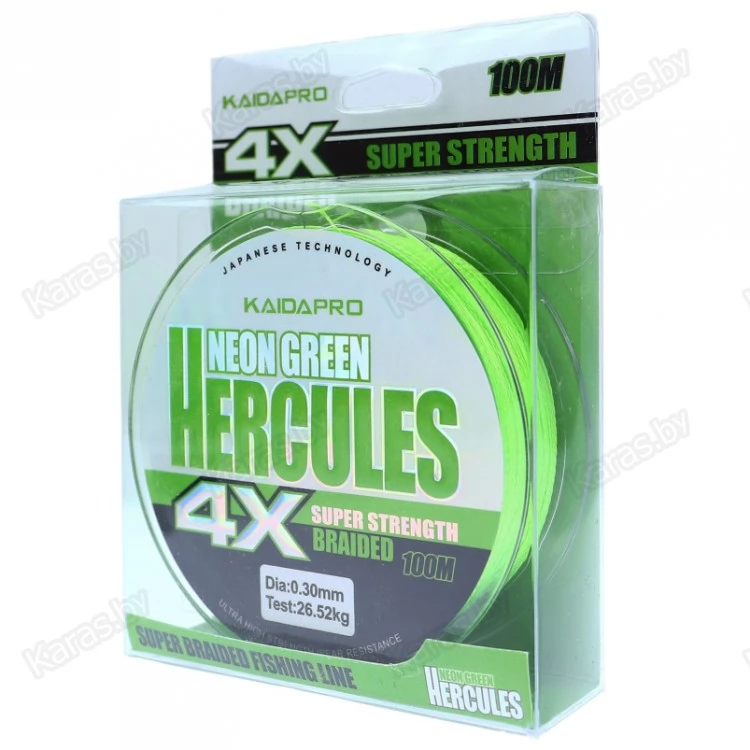 Kaida Pro плетеные шнуры с улучшенными показателями прочности и износостойкости. У лески хорошая информативность и полностью отсутствует растяжимость. Шнур - 4-жильный, плотное плетение делает ее поверхность более ровной и гладкой, что положительно сказывается на качестве заброса. Плетеный шнур Kaida Pro Hercules имеет яркую салатовую окраску. Размотка - 100 метров.