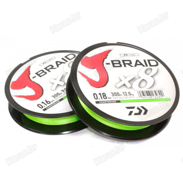 Высококлассный плетеный шнур отменного японского качества J-Braid X8 от фирмы Daiwa состоит из восьми волокон высококачественного полиэтилена (PE), имеет очень плотное плетение и сечение, максимально приближенное к круглому. Благодаря этому плетенка обладает поверхностью отменной гладкости. Плетеные шнуры J-Braid X8 имеют практически нулевую растяжимость, что способствует правильной игре приманки и быстрой подсечке, превосходной связи с приманкой, а также более дальнему и точному забросу. Шнур также обладает хорошей устойчивостью к истиранию, благодаря чему минимально подвержен повреждению о различные подводные препятствия и может применяться для ловли в затрудненных условиях. Яркий цвет шнура хорошо заметен даже при плохом освещении, позволит легко контролировать приманку.