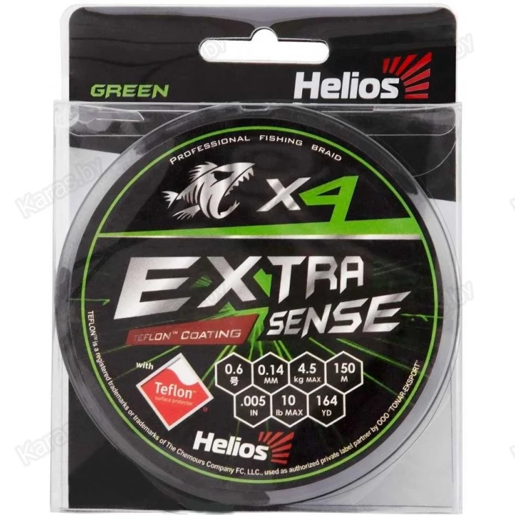 Шнур Helios Extrasense X4 - 4-жильный шнур с инновационным покрытием TEFLON, которое улучшает прочность шнура на узле, делает поверхность более износостойкой и облегчает скольжение по внутренней поверхности кольца, повышая дальность заброса. Отлично подходит как для пресной, так и для соленой воды.