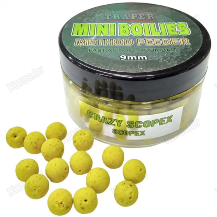 Мини-бойлы Mini Boilies Method Feeder от польского бренда Traper – приманки, которые используются для ловли карпа на фидер или ловли другой крупной рыбы с применением кормушками типа Method. Основная задача этих мини-бойлов отсекать мелкую рыбу. Бойлы имеют размер 9 мм, который исключает возможность поднятия этой приманки некрупной рыбой. За счет размера бойлов происходит селективный отбор рыбы по размеру.