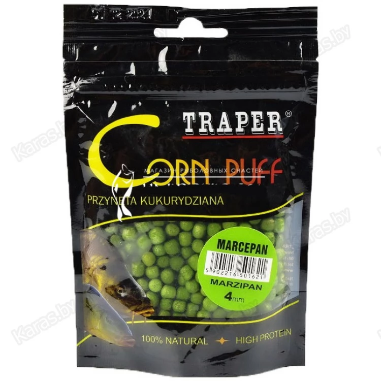 Corn puff – превосходная насадка, работающая по принципу шариков пенопласта. Содержит ароматизаторы, привлекающие рыбу. Может использоваться для ловли карпа, карася, голавля, язя, амура и другой рыбы. После попадания в воду размокает спустя 15 минут, поэтому подходит только для активной ловли (с частыми перезабросами кормушки).