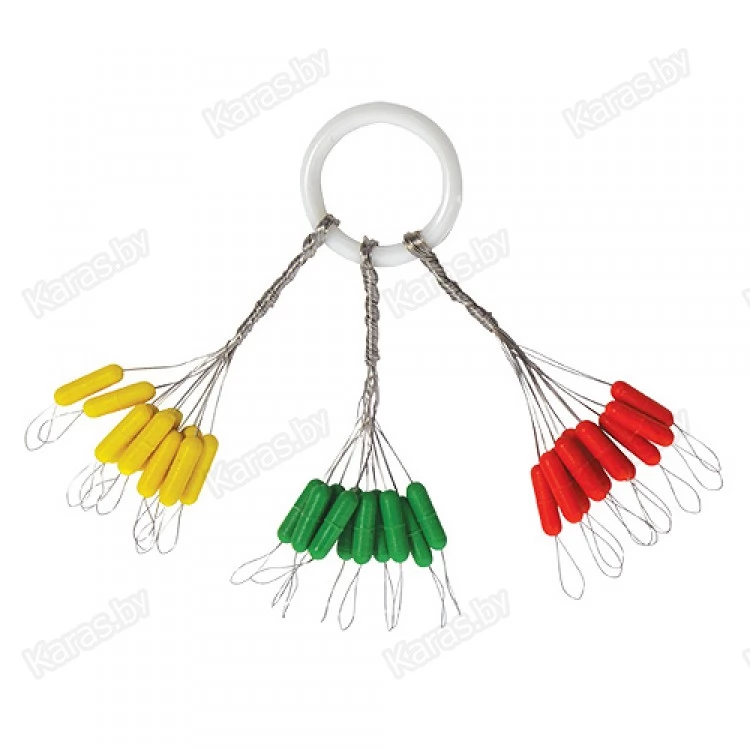 Стопоры из силикона черного цвета. Используется для ограничения глубины в оснастках со скользящим поплавком. Каждый размер стопора предназначен для определенного размера лески. Чтобы его надеть на леску, ее необходимо вставить в проволочную петельку и сдвинуть на нее стопор. В наборе по 30 штук.