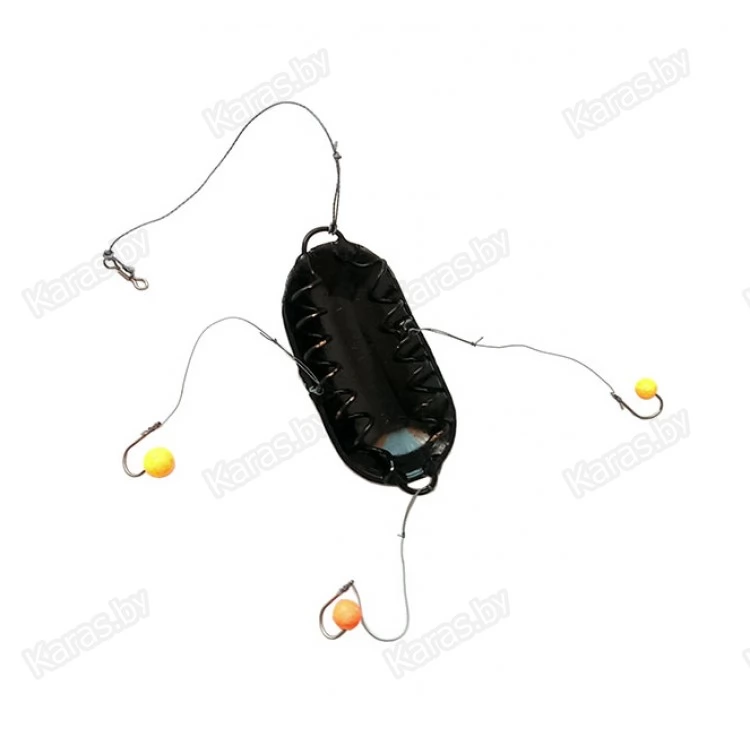 Эффективная снасть для ловли рыб семейства карповых. Смоктуха оснащена тремя крючками с пенопластовыми шариками на плетёных поводках и вертлюгом.