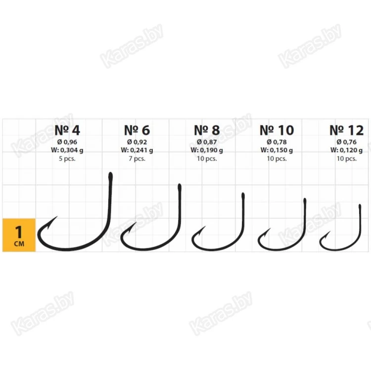 | Артикул | Размер | Вес крючка, г | Диаметр проволоки, мм | Количество в упаковке (шт.) |