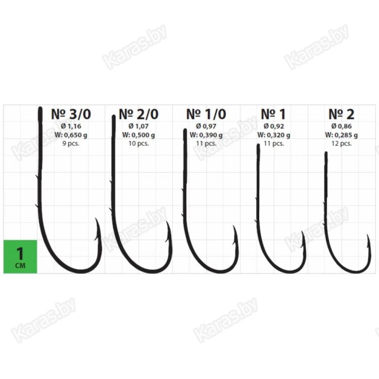 | Артикул | Размер | Вес крючка, г | Диаметр проволоки, мм | Количество в упаковке (шт.) |