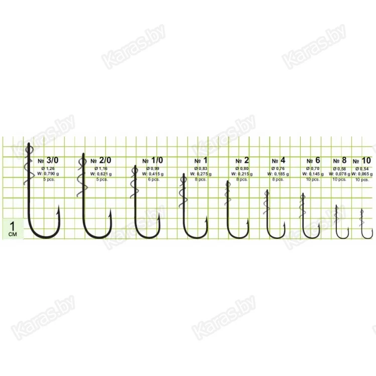 | Артикул | Размер | Вес крючка, г | Диаметр проволоки, мм | Количество в упаковке (шт.) |