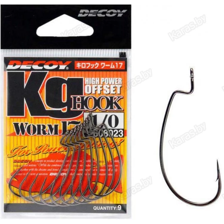 Decoy Kg Hook Worm 17 - мощный и крепкий крючок, который благодаря широкой, закругленной форме отлично подходит для оснащения объемных приманок – виброхвостов, свимбейтов, твистеров с широкими хвостам, различных «существ». Отлично сочетается с «техасской» и «каролинской» оснастками, а так же при ловле на неогруженный силикон. Жало у крючка этой модели направленно существенно выше чем «ступенька», что благоприятно сказывается на эффективности подсечек, а так же противостоянию зацепам именно на силиконовых приманках такого типа. Для приманок с тонким телом, например для червей из мягкого пластика в большей мере подойдут другие модели, например Worm 11 Tournament, или Worm 9 Upper Cut.