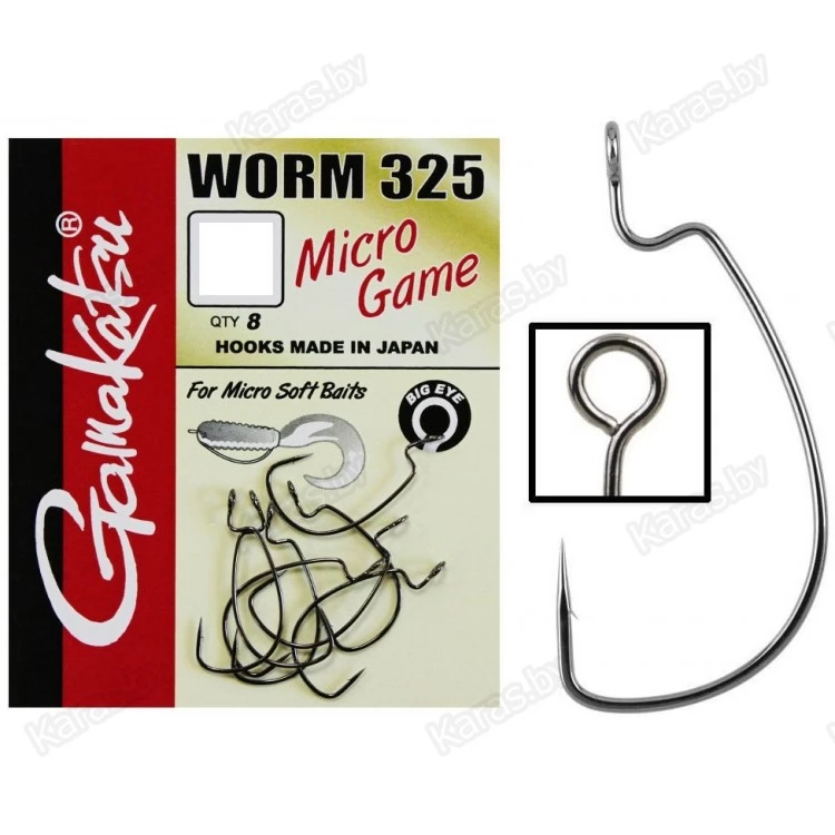 Серия офсетников Worm 325 Micro Game от японской компании Gamakatsu отлично подойдет для создания легких и суперлегких шарнирных оснасток. Основное отличие крючка - более крупное и широкое кольцо, что обеспечивает приманке свободную посадку на шарнире и не позволяет крючку заклинивать в ушке грузила. Gamakatsu Worm 325 изготовлены из тонкой, но прочной высокоуглеродистой стали, что позволяет не утяжелять приманку, тем самым влияя на ее игру. Супер острые жала крючков имеют конусообразную форму и заточены с использованием технологии химической заточки. Офсетники серии Worm 325 способны выдержать значительную нагрузку и гарантируют положительный результат при вываживании по-настоящему крупного трофея.
