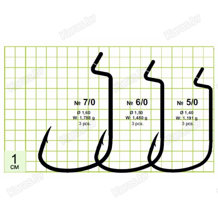 | Артикул | Размер | Вес крючка, г | Диаметр проволоки, мм | Количество в упаковке (шт.) |
