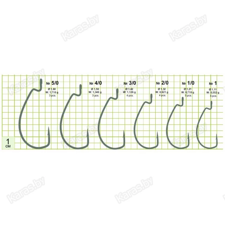 | Артикул | Размер | Вес крючка, г | Диаметр проволоки, мм | Количество в упаковке (шт.) |
