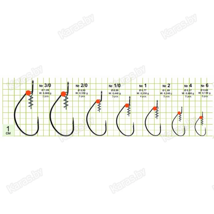 АртикулРазмерВес крючка, гДиаметр проволоки, ммКоличество в упаковке (шт.)