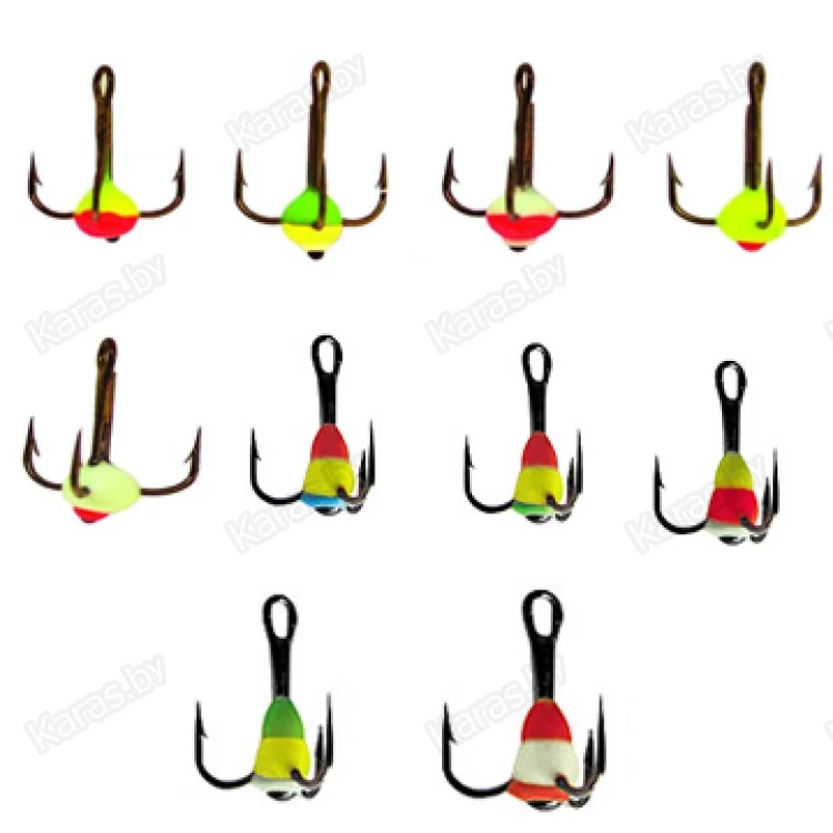 Тройники VMC с пластиковой цветной каплей. Используется для комплектации балансиров и вертикальных блёсен.