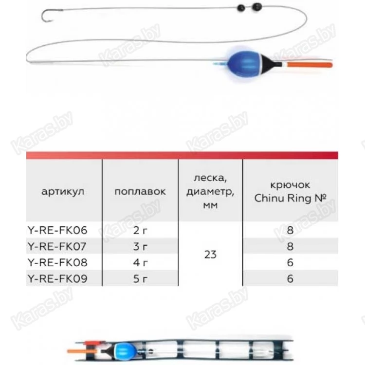 | Грузоподъемность поплавка, г | 2,0; 3,0; 4,0; 5,0 |