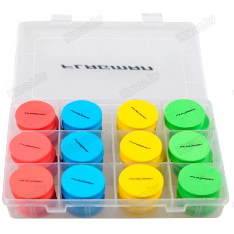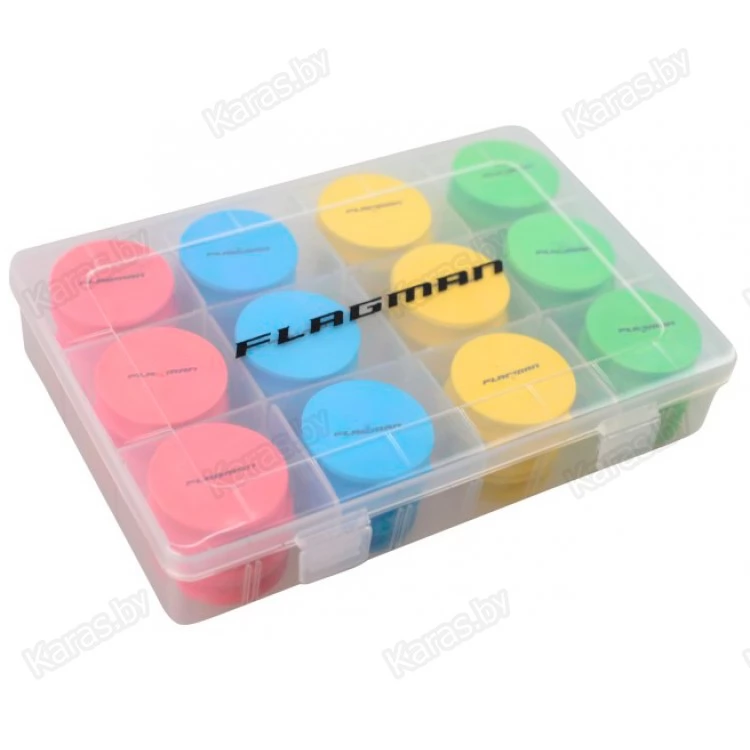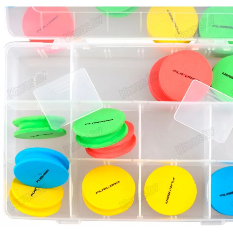 Удобный прямоугольный пластиковый кейс для хранения и транспортировки поводков и готовых оснасток. Состоит из 12 отделений, в каждом из которых размещается по три шпули размера Small из EVA. Прозрачная крышка кейса позволяет видеть практически все шпули и надписи на них. Крышка закрывается на две защелки. В комплекте 36 шпуль красного, желтого, зеленого и синего цвета, диаметром 38 мм.
