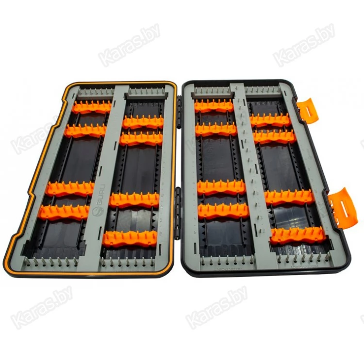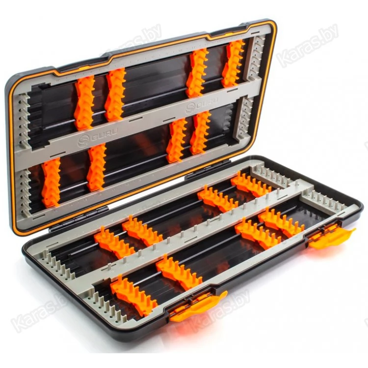 Эта современная водонепроницаемая поводочница из прочного материала способна вместить целых 1000 готовых поводков самых разных вариаций. Расстояние между колышками для петель и крючков легко можно регулировать, передвигая и фиксируя их на направляющих рейках. Прочный корпус надежно защищает расположенные внутри аксессуары.