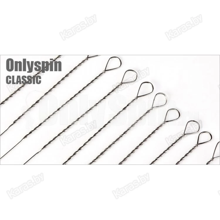 Проволока – нержавеющая жесткая высококачественная проволока, которая противостоит механическим повреждениям, будь то щучьи зубы или максимальные нагрузки. Допускает многократное скручивание, сгибание/разгибание, не теряя прочности в месте сгиба. Качество поводков OnlySpin Classic одинаково высоко в независимости от длинны поводка и диаметра проволоки.