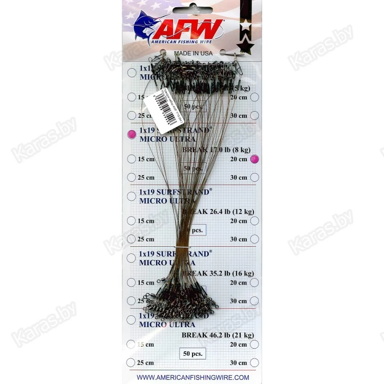 Стальной поводок AFW 1x19 Surfstrand Micro Ultra оснащён вертлюгом и застёжкой, тест: 8 кг (1 шт.)