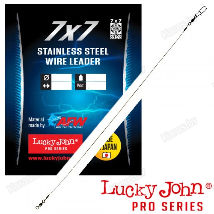 Стальные поводки Lucky John 7x7 SSW AFW LJP6009 оснащённые вертлюгом и застёжкой (3 шт.) Ø 0.28 мм