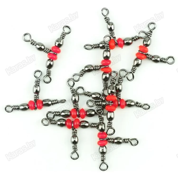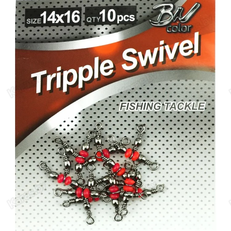 Вертлюг тройной Namazu Tripple Swivel - элемент оснастки, состоящий из трех вертлюжков, надежно соединенных между собой. Детали для фиксации разделены двумя стопорными бусинами. Такое крепление особенно пригодится в монтажах с отводным поводком. Позволит избежать лишних узлов, которые снижают прочность лески. Снижает риск перекручивания снасти. Namazu Tripple Swivel выпускаются разных размеров. Это позволяет подобрать вариант под конкретные условия и в соответствии с общим тестом снасти.