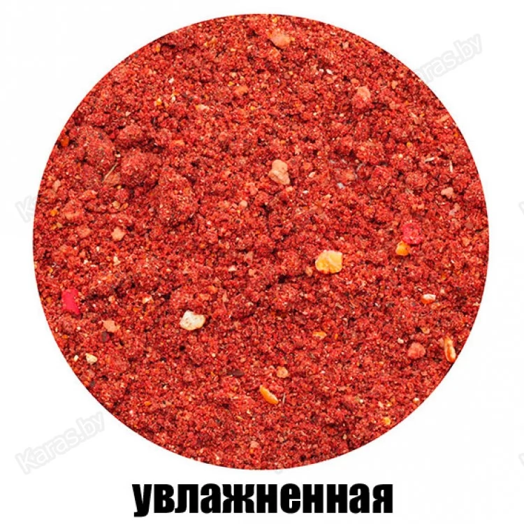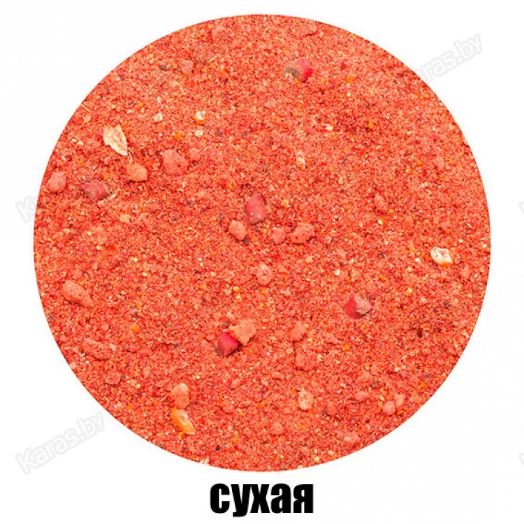 Высокопитательная прикормка красного цвета, средне-крупного помола, содержащая кукурузу, печиво и пеллетс. Обладает клубничным ароматом, который наиболее популярен у любителей ловли карпа.