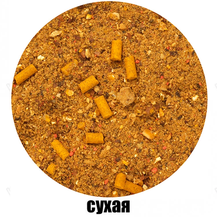 Высокоэффективная отлично сбалансированная смесь с ароматом дыни. Разработана специально для ловли карпа и карася. Прикормка имеет жёлтый цвет, средний помол с вкраплением крупных кормовых частиц.