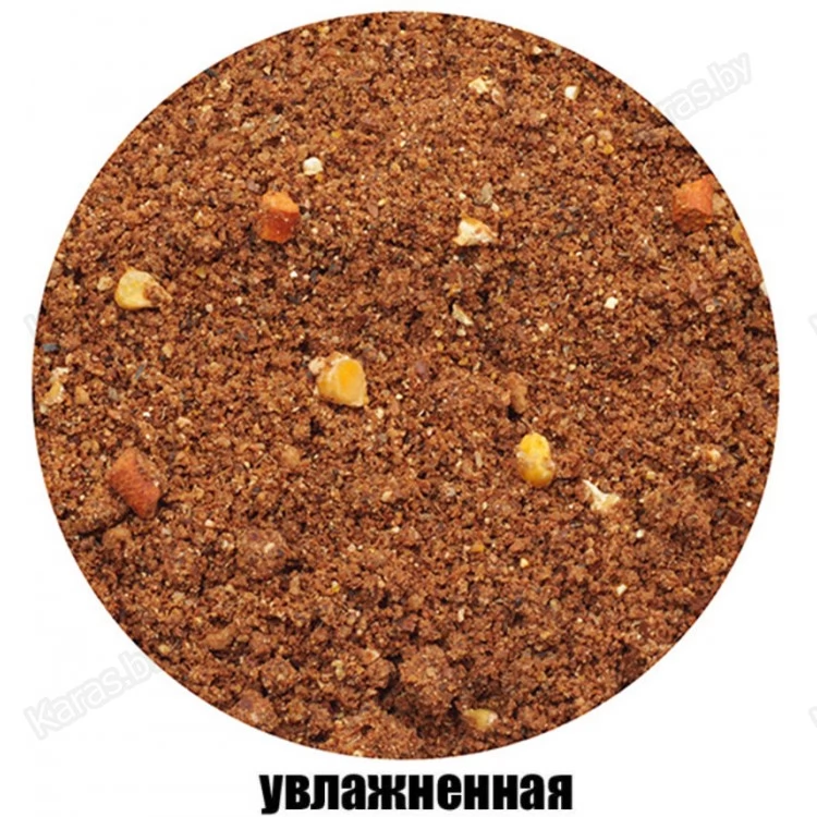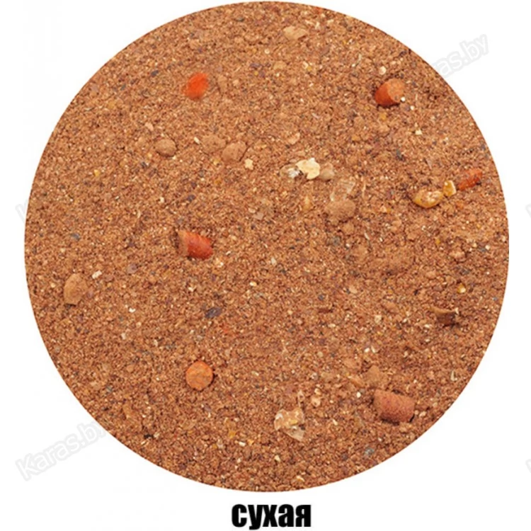 Высокопитательная прикормка тёмно-красно-оранжевго цвета, средне-крупного помола. Смесь богата протеином животного происхожденя, который интенсивно воздействиует на вкусовые рецепторы карпа, сигнализируя ему о том, что в месте закорма стоит подольше задержаться.