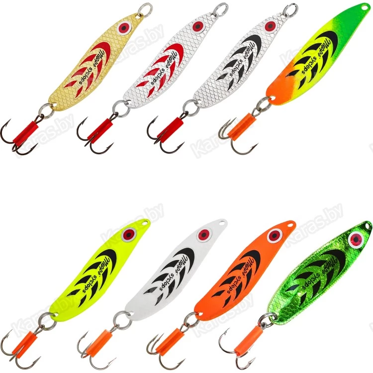 MEPPS SYCLOPS — одна из лучших колеблющихся блесен в мире, имеющая превосходно отработанную форму. Старинные прототипы, схожие с этой блесной, в наше время практически не сохранились. SYCLOPS унаследовал от них двойной прогиб в горизонтальной проекции, обеспечивающий при проводке максимальное сходство с движениями живой рыбы.