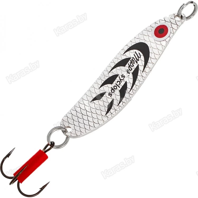 Сложный профиль имеет десять граней отражения света. Его движение, благодаря идеальным колебаниям в различных плоскостях, очень точно имитирует живую рыбу - идеальную жертву хищника. Устойчивость игры гарантирована при любой скорости проводки. Такая характерная особенность облегчает и быстрый охват больших участков стоячих вод (щука, судак, окунь), и обеспечивает удобную ловлю на течении (лосось, кумжа, форель).