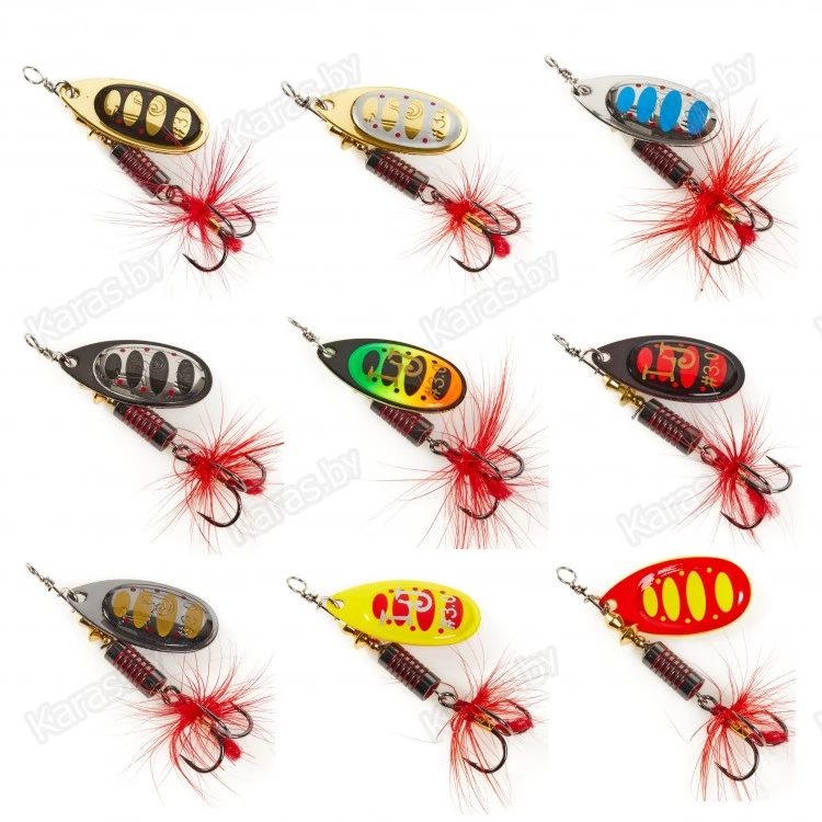Главный элемент блесен – вращающийся лепесток. Он очень легок, сделан из латуни и обладает хорошими динамическими показателями при вращении в воде, что позволяет делать проводку приманки на минимальной скорости. Лепесток «заводится» сразу, как только блесна начинает движение. Лепестки окрашены с двух сторон. С какой бы стороны хищная рыба не смотрела на приманку, ее расцветка остается одинаковой и привлекательной, что повышает интерес к блесне и, в итоге, приводит к результативной атаке.