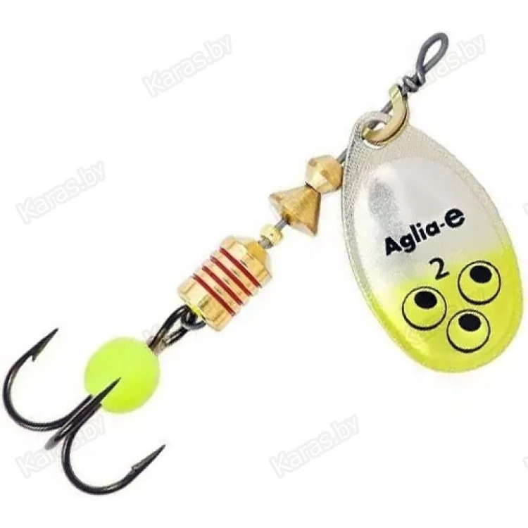 Mepps Aglia-E – это сочетание классического, проверенного временем лепестка с имитацией икринки на тройнике. Многие лососевые в период нереста практически полностью переходят на питание икрой, и такая блесна становится вдвойне привлекательной. В наших условиях яркая «икринка» также выступает дополнительным привлекающим фактором, неотразимо действуя на окуня, который славится своим вниманием к деталям приманки. Яркий элемент эффективен и при ловле других хищников: щуки, голавля, язя и т. д.