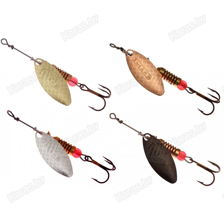 Благодаря своему «ивовому» лепестку и более тяжелому весу, AGLIA LONG хорошо держит медленное и стабильное вращение на самых сильных течениях. Рекомендуются для плотных потоков, быстрой и глубокой воды, а также для ловли против течения. Хороша и для использования в озерах при охоте на донных хищников, которые не реагируют на быстроходные приманки.