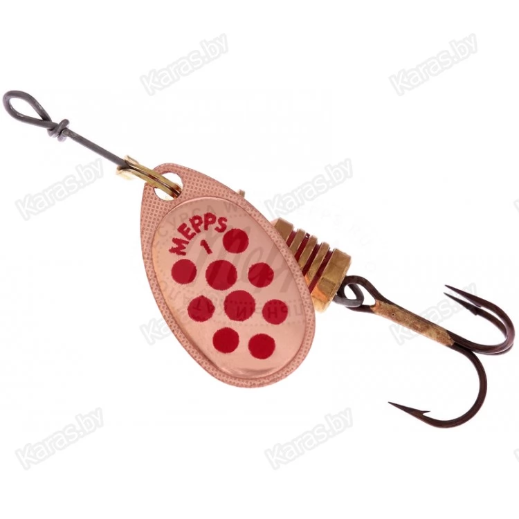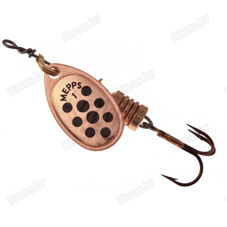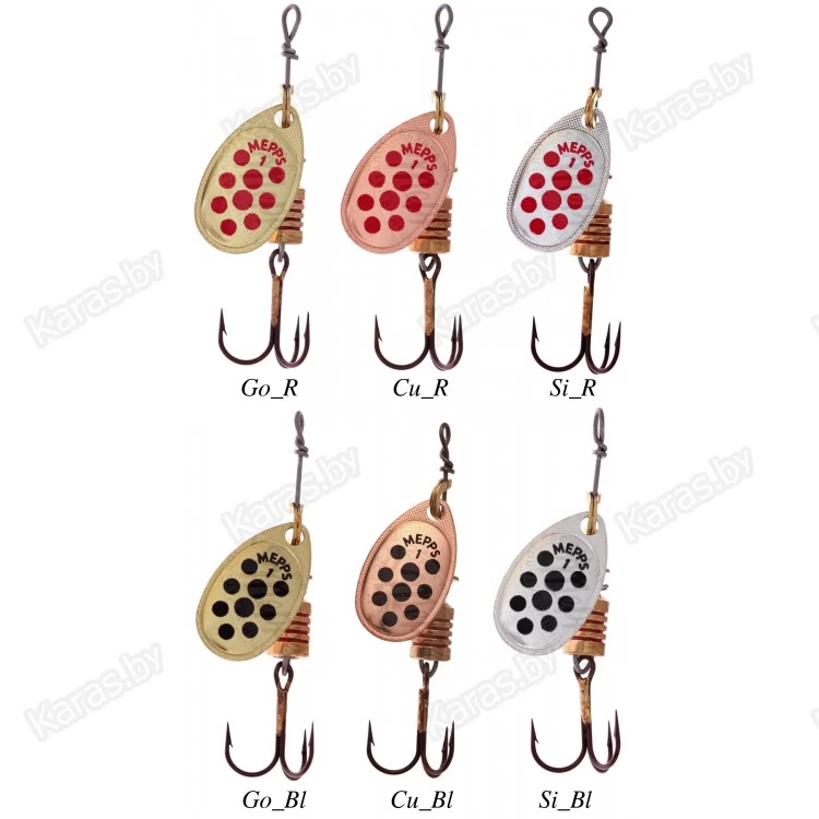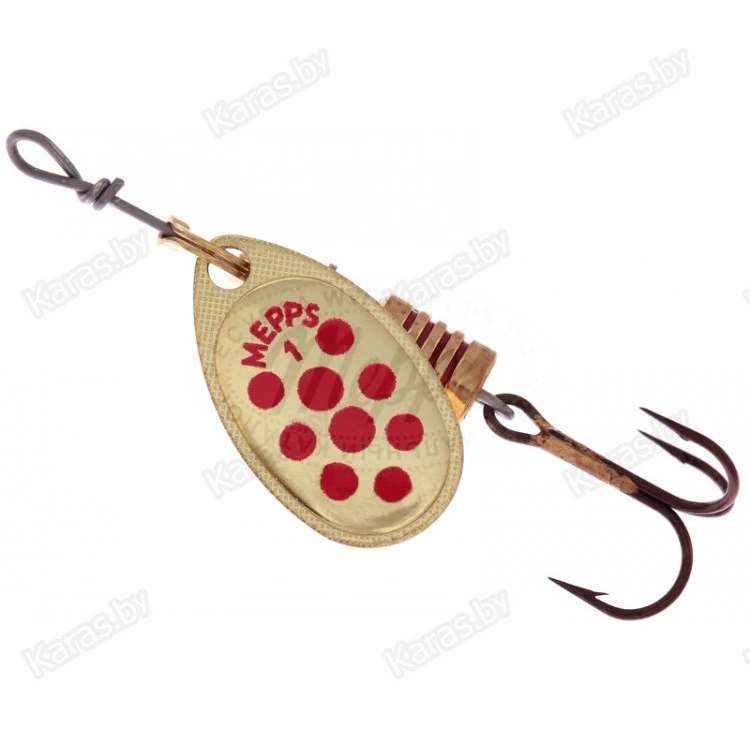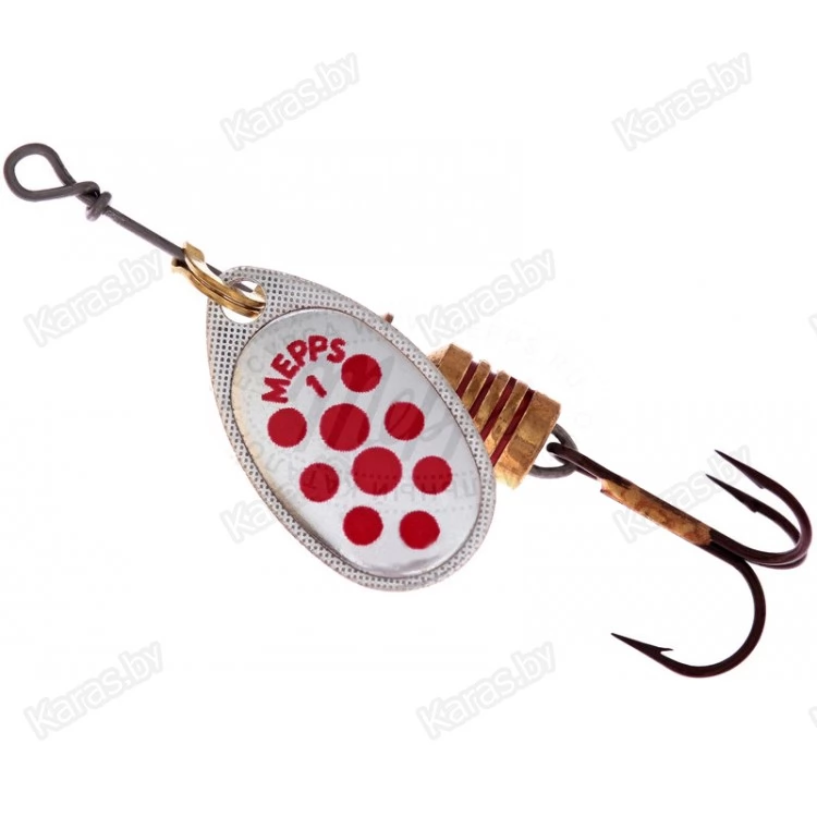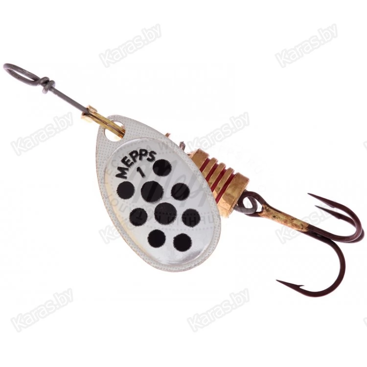 На лепестки MEPPS AGLIA DECOREE нанесены красные и черные точки. Опытные рыболовы, признавая полезность этой окраски, разделяются во мнениях о причинах ее эффективности. Одни считают, что точки на лепестке повышают контрастность окраски, тем самым провоцируя атаку рыбы. По их мнению, доказательством этого служит уловистость AGLIA DECOREE в мутной воде. Другие — наоборот придерживаются мнения, что эти же точки, при вращении сливаясь в мягкие линии, делают окраску спокойнее, что меньше настораживает рыбу и придает приманке внешность насекомого. Недаром MEPPS производит некрупные (№1, 2, 3) размеры данной модели. Лепестки AGLIA DECOREE имеют серебряную, золотую и медную окраски. Вы всегда имеете возможность подобрать наилучшую комбинацию для ваших условий. При вращении угол отклонения лепестка от оси составляет 60°